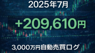 2025年7月のトライオートFXによる、自動売買の損益合計(実現損益+スワップ)は+209,610円でした