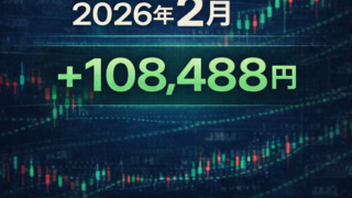 2026年2月のトライオートFXによる、自動売買の損益合計(実現損益+スワップ)は+108,448円 でした