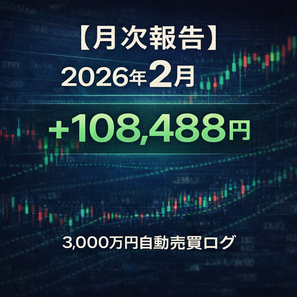 2026年2月のトライオートFXによる、自動売買の損益合計(実現損益+スワップ)は+108,448円 でした